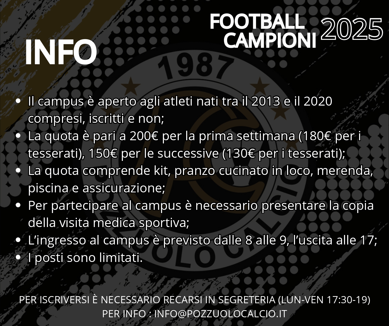 Info: info@pozzuolocalcio.it 📞: 366 9431744 (SIMONE RADOGNA) 342 5232005 (FILIPPO MOBILIA)